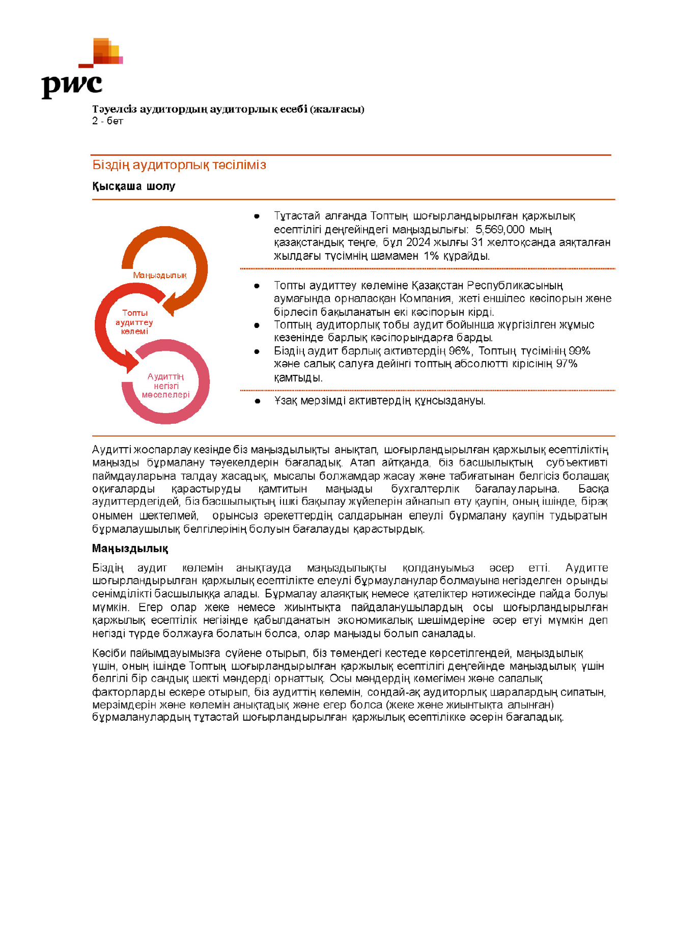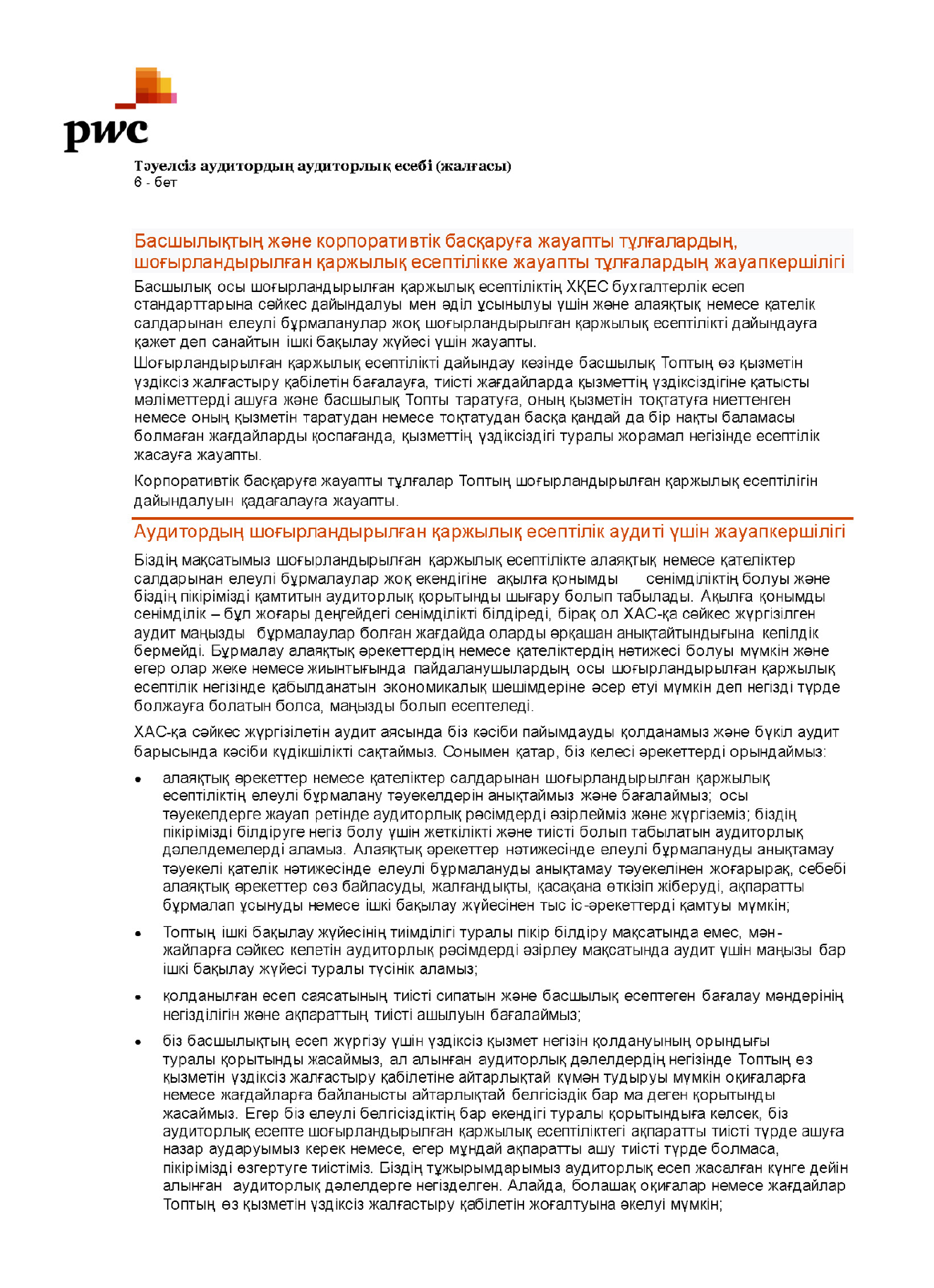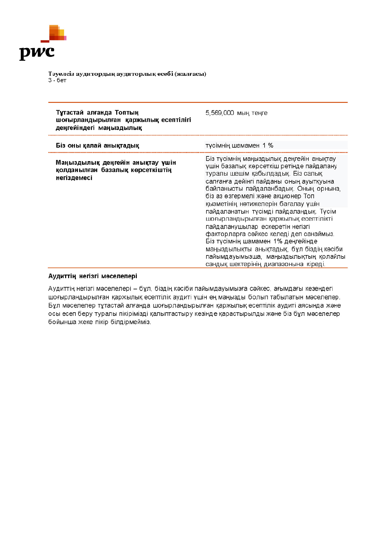 ТӘУЕЛСІЗ АУДИТОРДЫҢ АУДИТОРЛЫҚ ЕСЕБІ