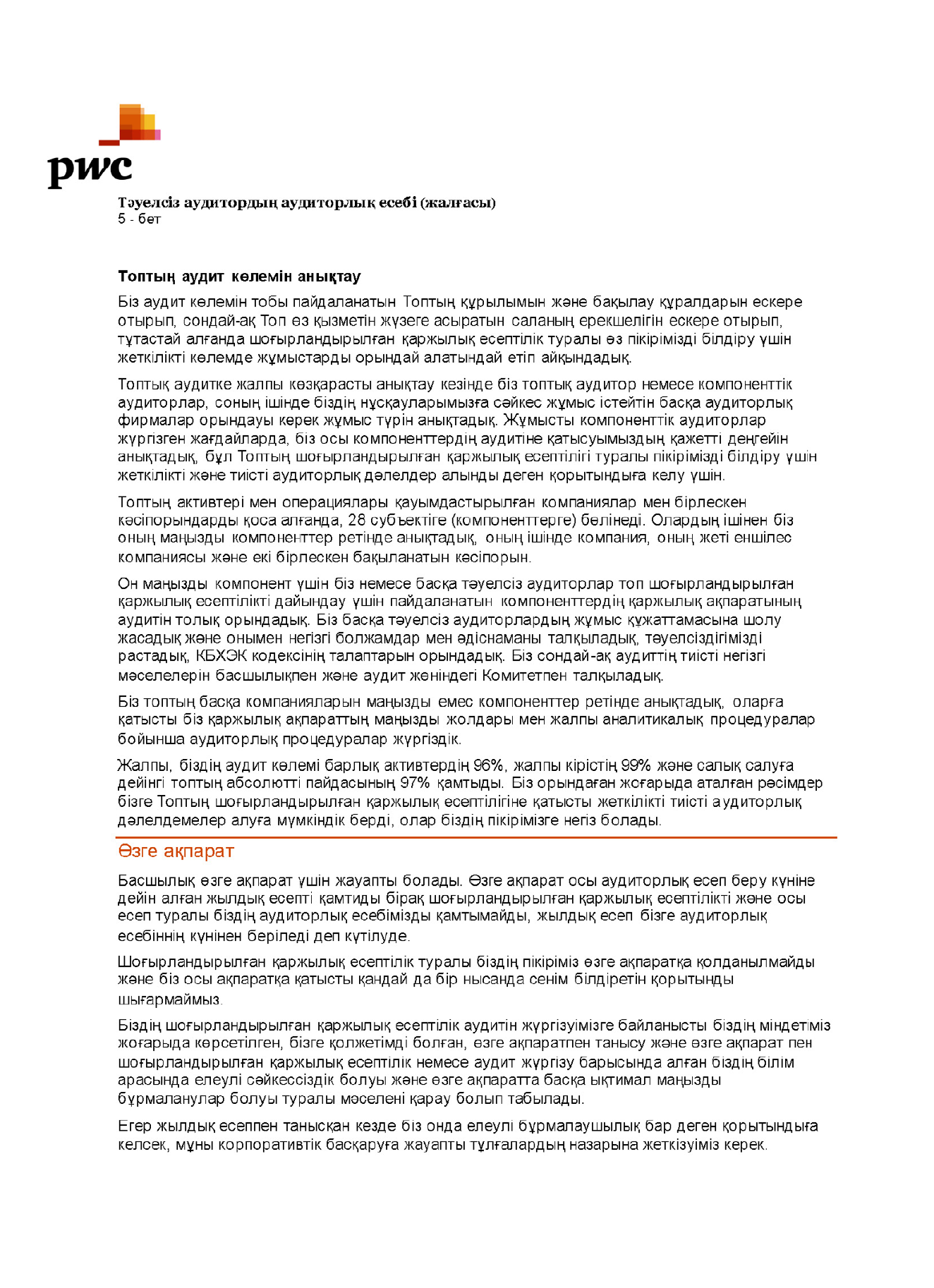 * Жалпы бақылаудағы кәсіпорындарды сатып алуды көрсету үшін салыстырмалы ақпарат қайта есептелді (2-ескертпе).