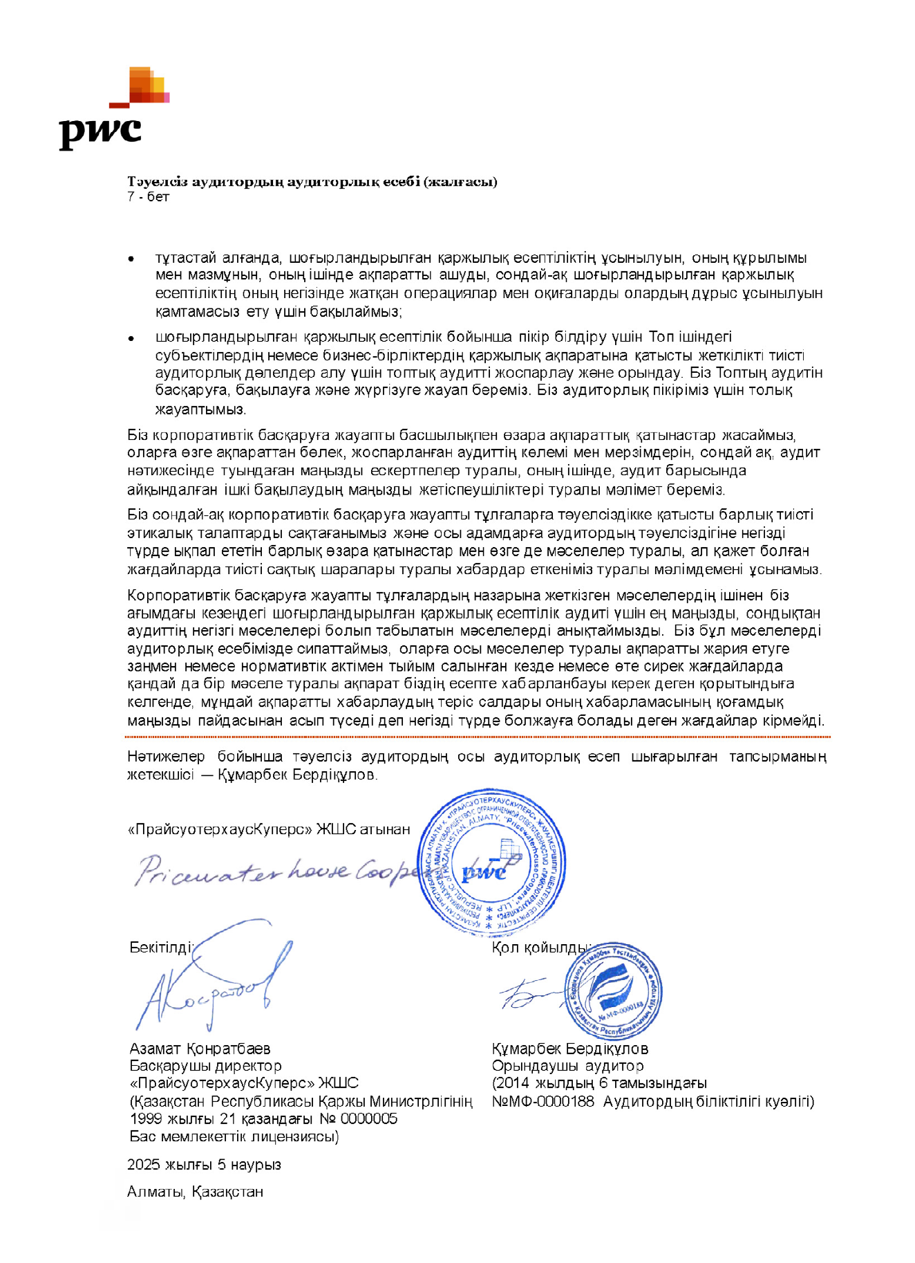 2025 жылдың 5 наурызда басшылықтың атынан қол қойылды.