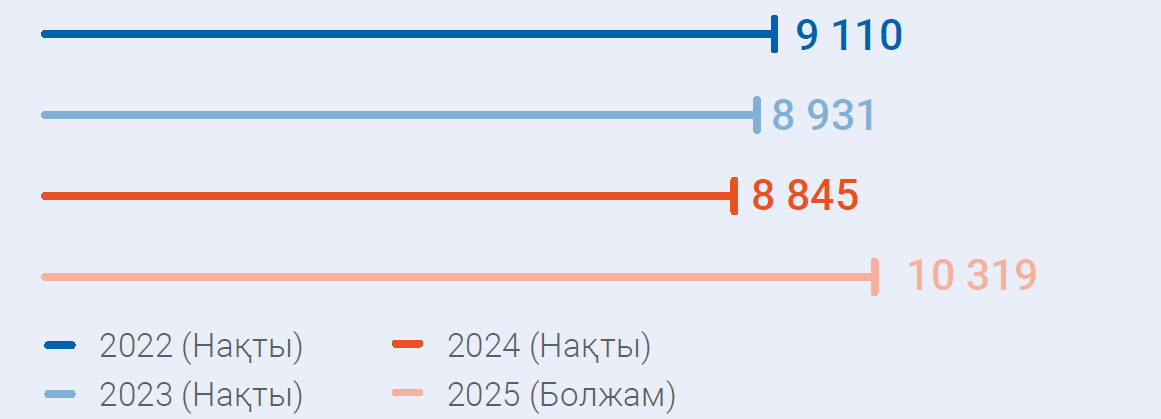 Көрсеткіш | 2022 нақты | 2023 нақты | 2024 нақты | 2025 болжам |