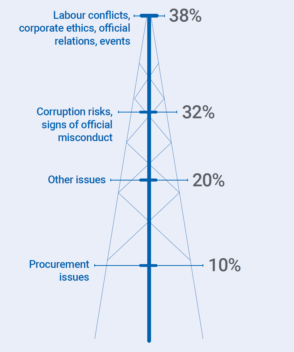 The Hotline is one of the key mechanisms of interaction of Samruk-Energy JSC with both internal and external stakeholders. All stakeholders can report actual and alleged violations of legislation, regulatory requirements and internal documents on ethics and compliance to the Hotline.