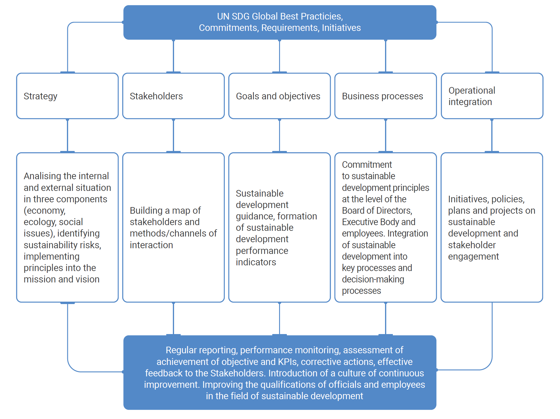 The Executive Body, within the scope of its authority, works on the implementation of sustainable development principles, compliance procedures, policy implementation and communicates its results to the Board of Directors.