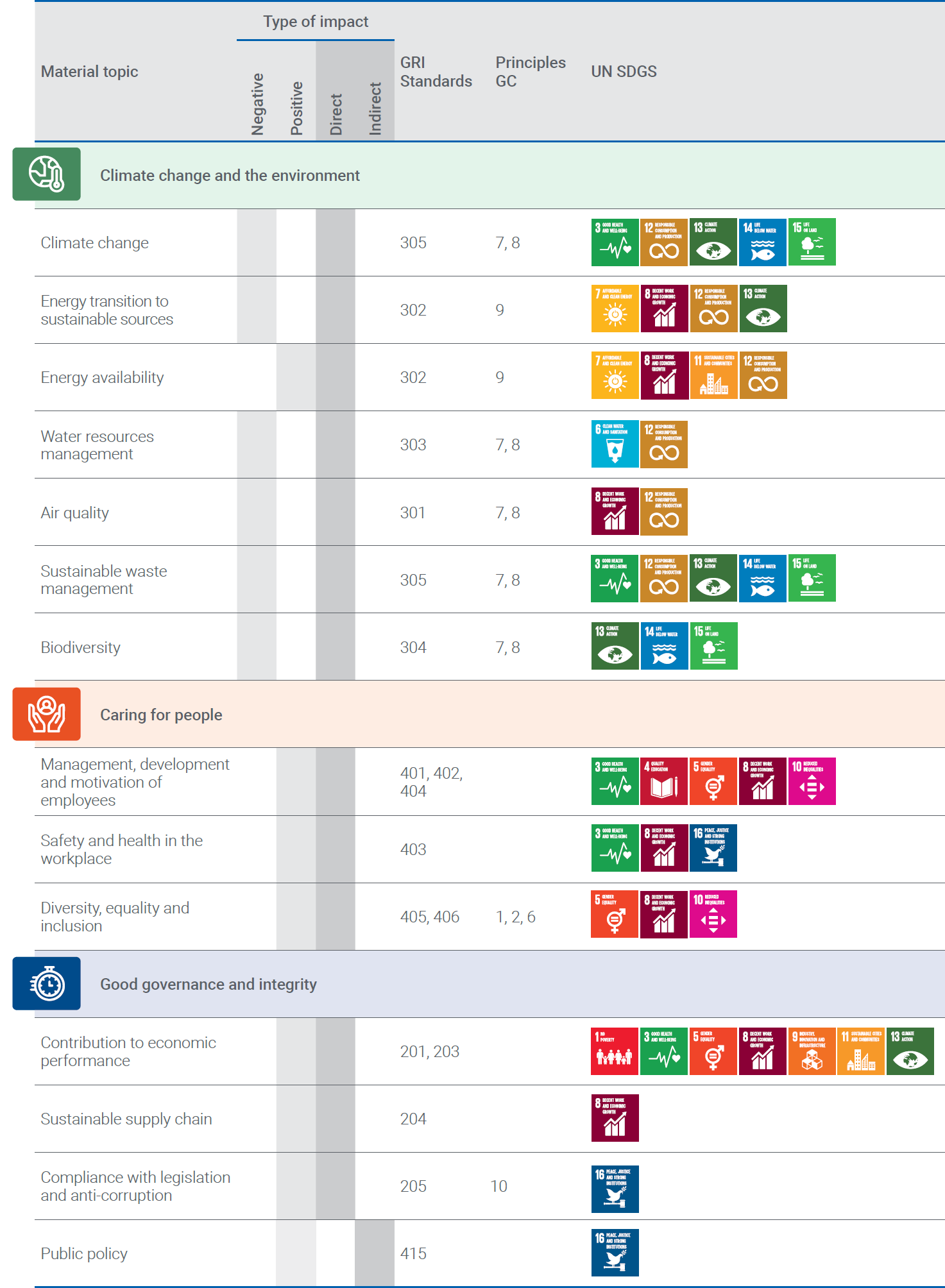 We ensured that our list of essential topics was in line with the Global Compact Principles and the UN Sustainable Development Goals.