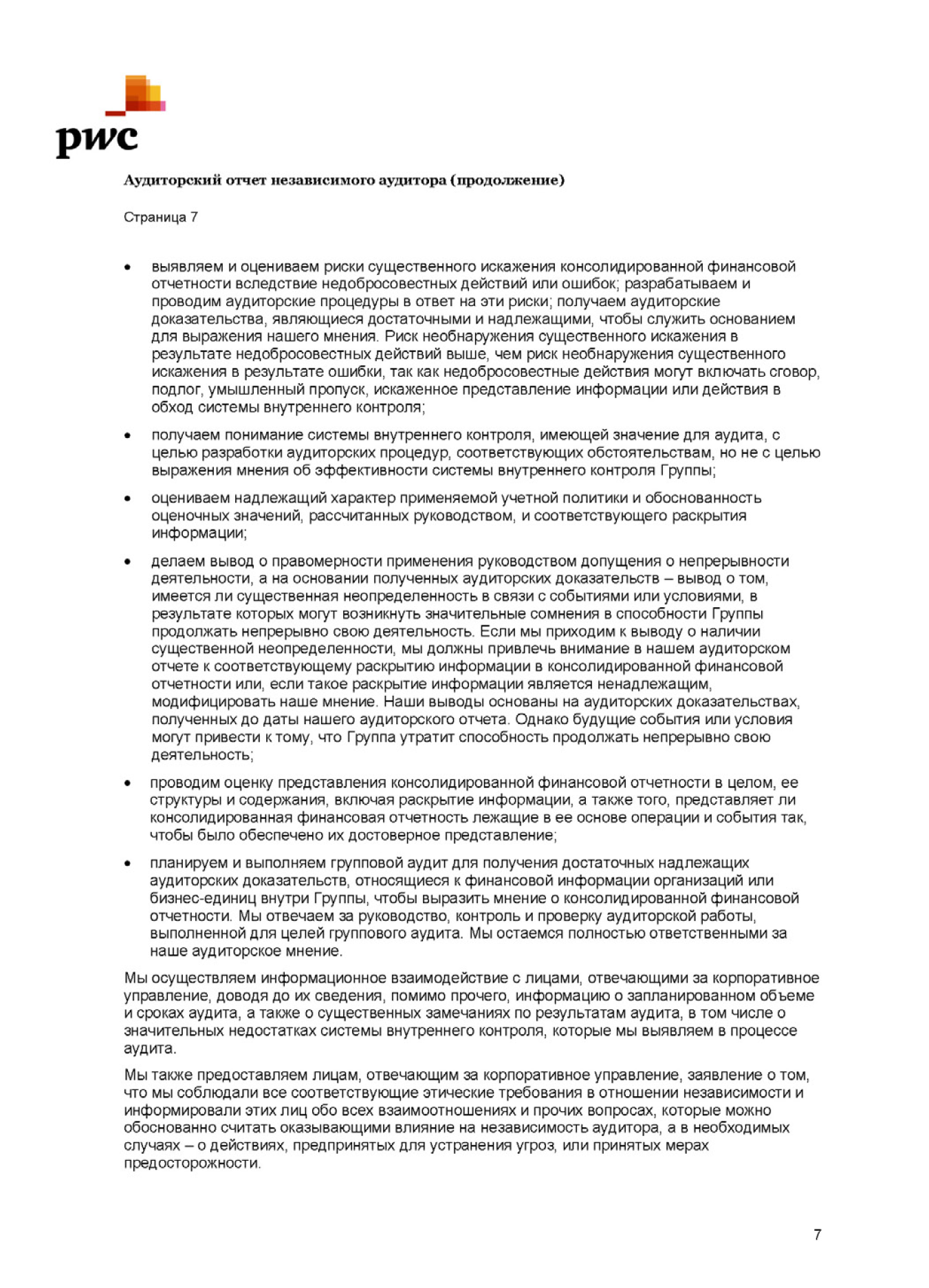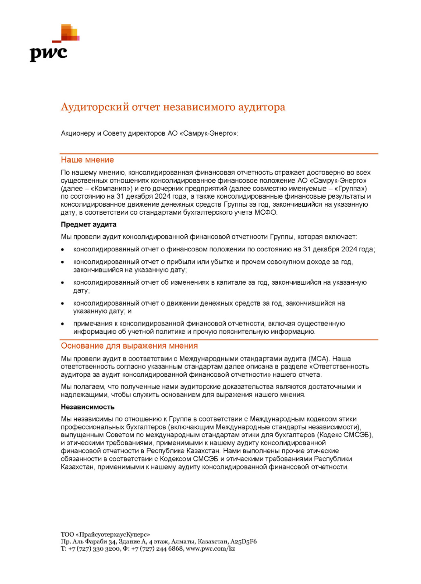 АУДИТОРСКИЙ ОТЧЕТ НЕЗАВИСИМОГО АУДИТОРА